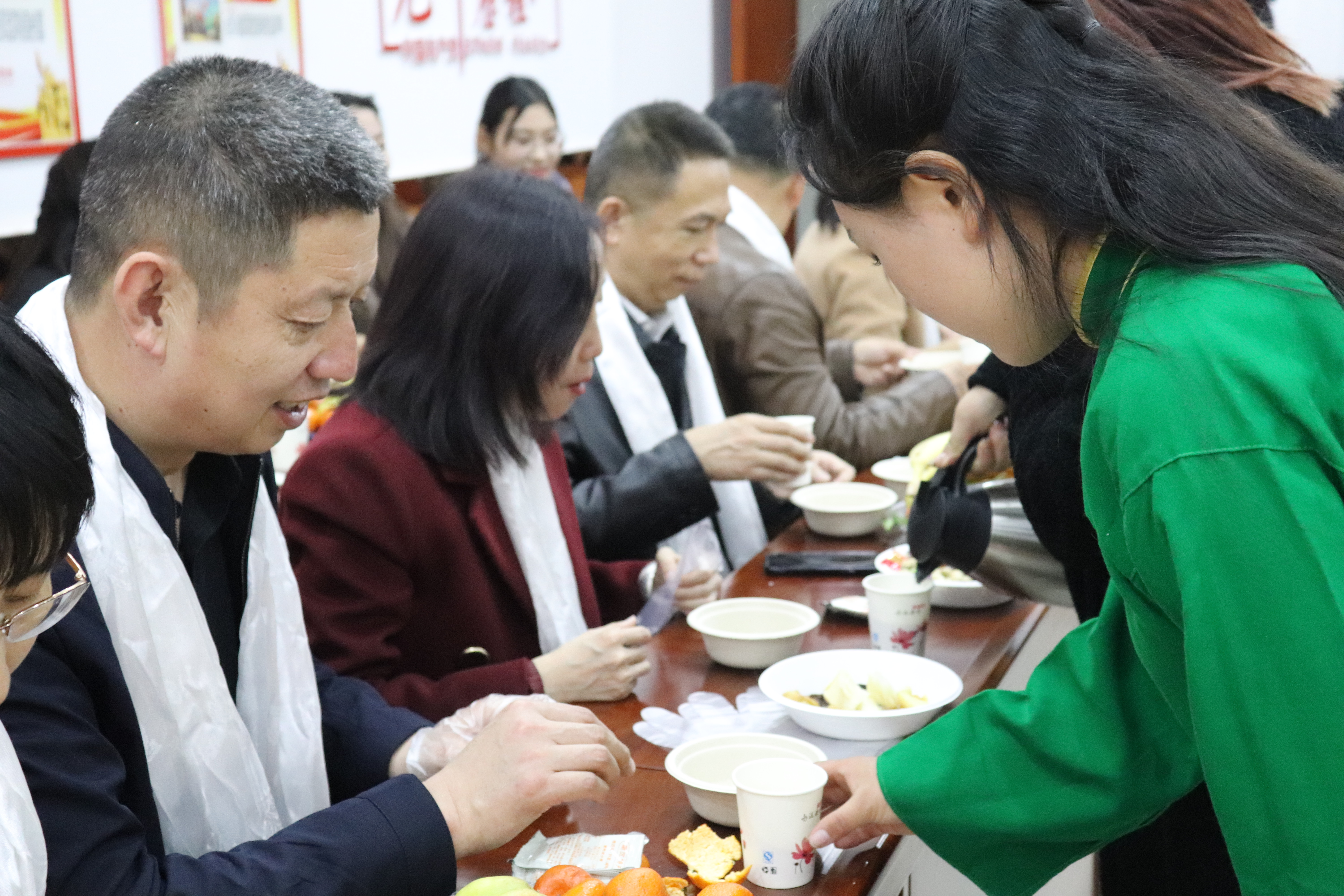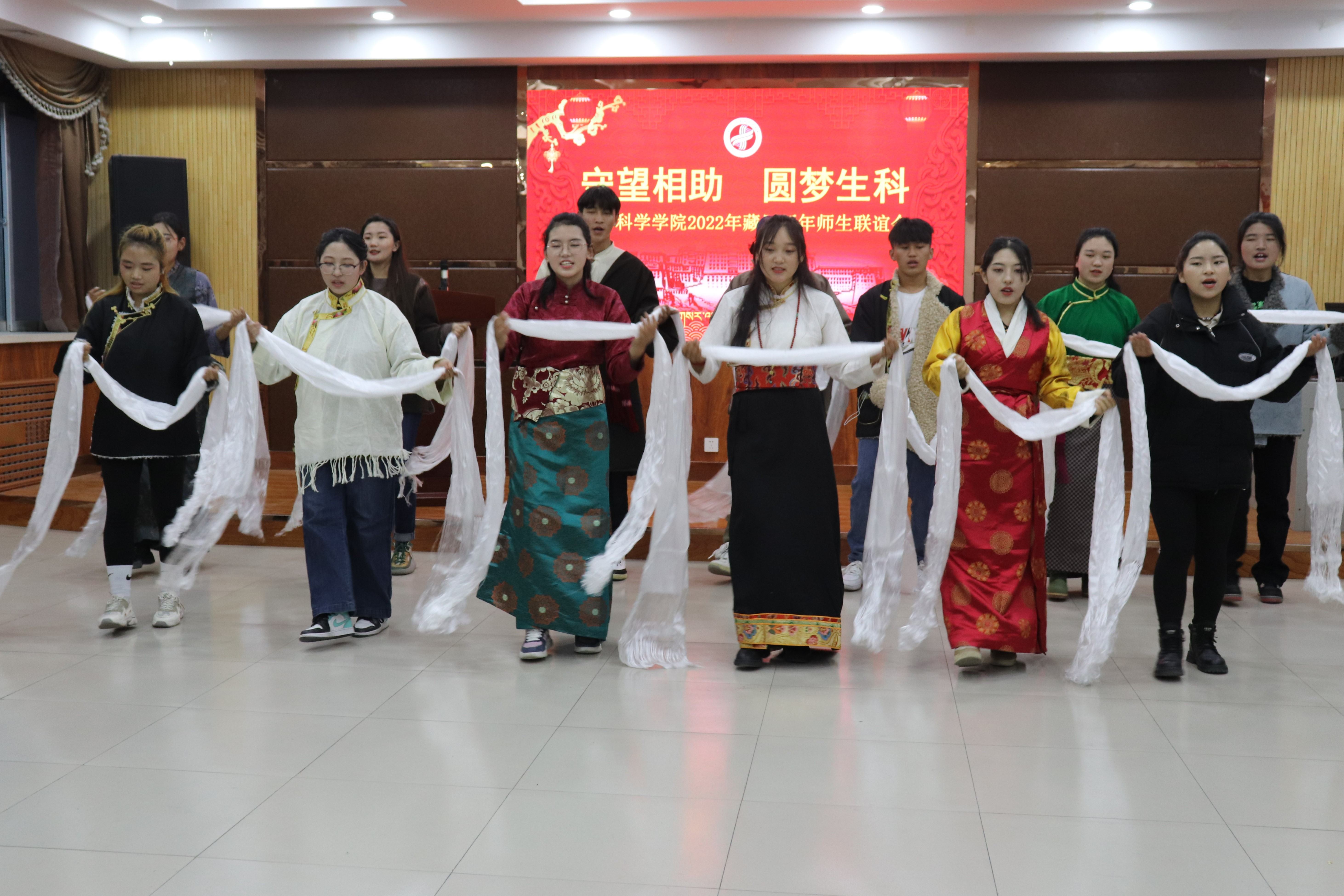晚会在具有高原特色的藏族敬酒歌、敬献哈达中拉开帷幕,热烈的气氛、精彩的表演,迅速点燃了同学们的热情。联欢会上藏族同学们邀请在场师生做糌粑、品尝藏族特色美食、跳锅庄舞......曼妙的舞姿,优雅的歌曲展现出“年味、乡土味、文化味”,唱响新时代对美好生活的赞歌。