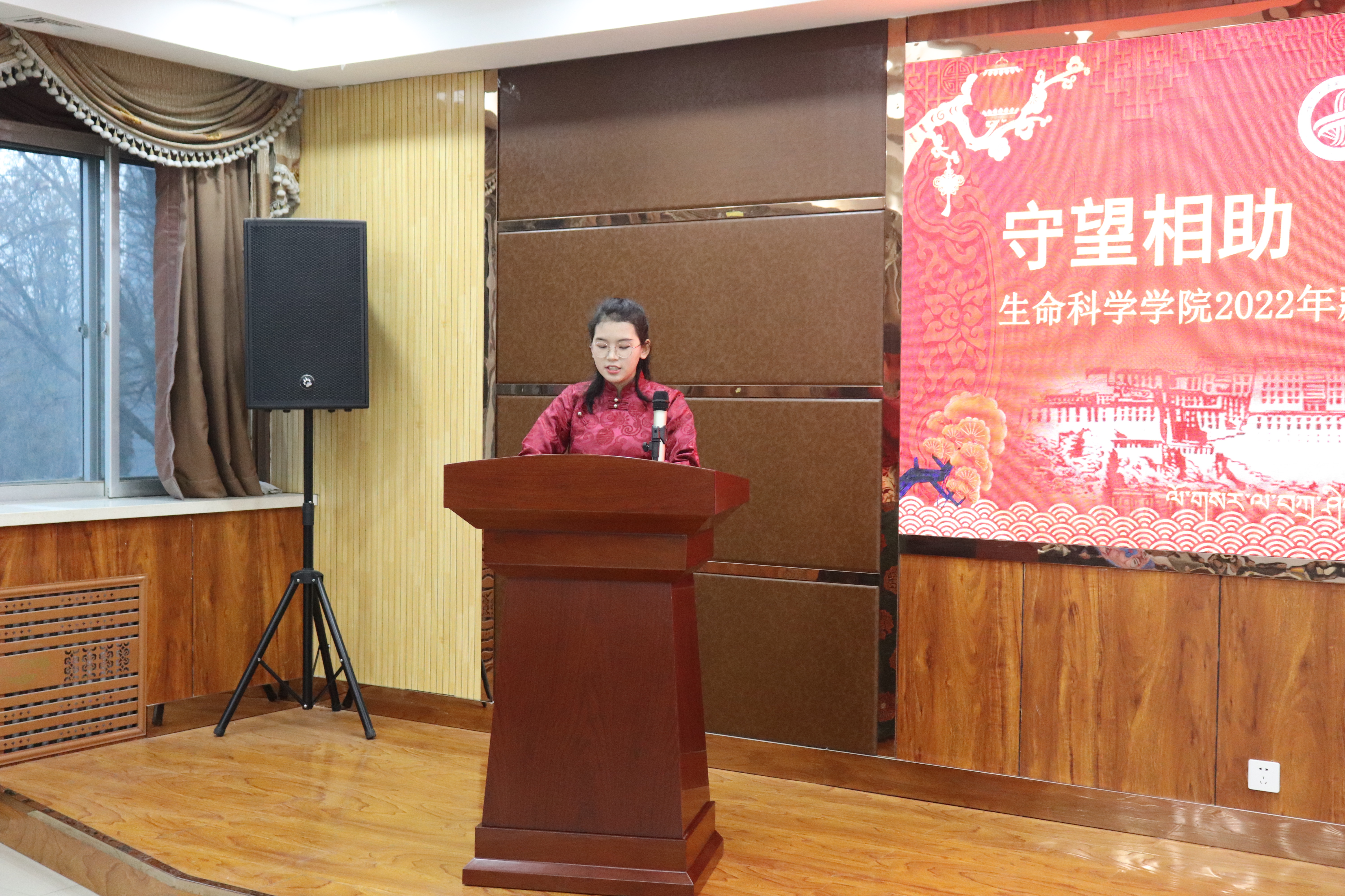 2020级生物科学类二班扎西拉姆代表藏族学生发言。她说到,作为远离家乡、独自外出求学的学子,在收到来自学院老师如家庭般的温暖和陪伴时十分感动。在今后的学习生活中一定不辜负祖国和学校的期望,努力学习,积极向上,维护民族团结,做一名德智体美劳全面发展的社会主义建设者和接班人。同时她向在场所有老师和同学们表达衷心的感谢与美好的祝福。
