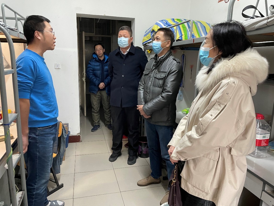 学院领导一行来到路国栋宿舍,详细询问他的学习和生活情况,叮嘱他要时刻增强安全意识,做好疫情防控工作。平时生活中注意保暖防寒、劳逸结合,度过一个平安祥和的新年,希望他利用假期做好总结和规划,为新学期的学习做好准备,希望在新的一年里身体健康、学有所成。