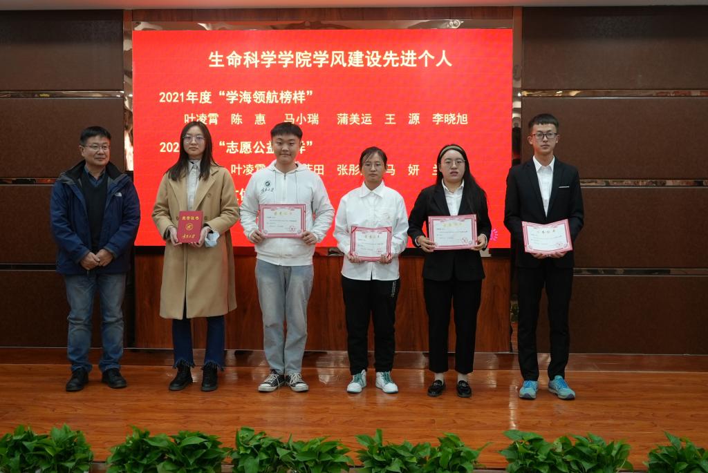 2021年度教风学风建设表彰大会在文萃校区知本楼二楼报告厅主会场,云直播分会场隆重举办。学院党委书记李东宁、院长苏建宇、党委副书记何彦平、西部特色生物资源保护与利用教育部重点实验室副主任李敏、副院长周学章,各办公室、系负责人,获奖师生代表在主会场参加会议,其他师生及学生家长应邀通过云直播参加表彰大会。