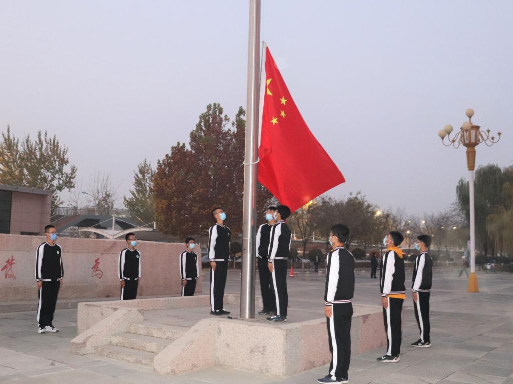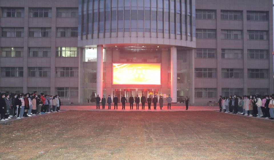 在贺兰山校区德勤楼前广场举行升国旗仪式,学院领导、教师代表、在校研究生和本科生参加仪升旗式。