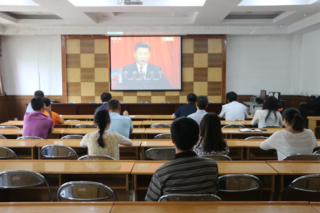 中心组成员,基层党支部书记、三班主任等在学院二楼报告厅,观看了习近平总书记在庆祝中国共产党成立95周年大会上发表重要讲话的录像。院领导学习后表示,要把习近平总书记“七一”重要讲话,同学习党的理论特别是习近平总书记系列重要讲话精神结合起来,深刻理解精髓要义,尤其要深刻理解不忘初心、继续前进的重大意义,进一步增强领导干部的政治意识、大局意识、核心意识、看齐意识。