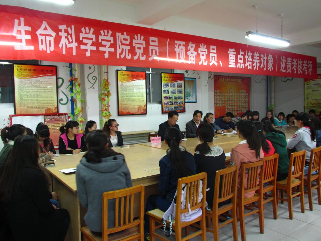 重点培养对象述责考核考评会在6号公寓楼二楼党员活动室举行,学院党委书记沈岩东、党委副书记叶志春出席了会议,13级生物科学(师范)1班全体学生参加了此次考核考评会。