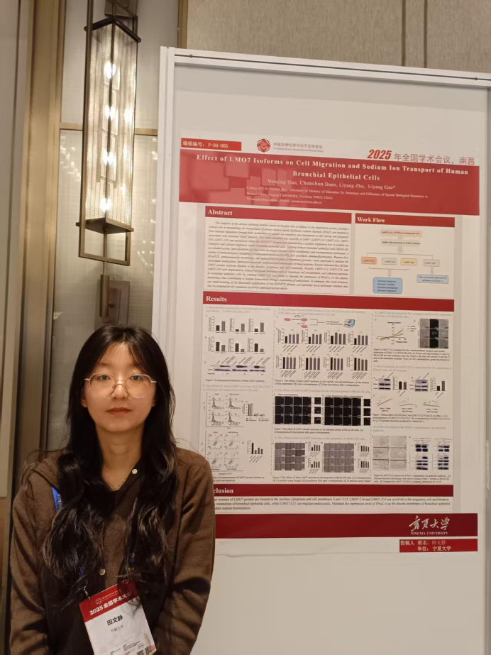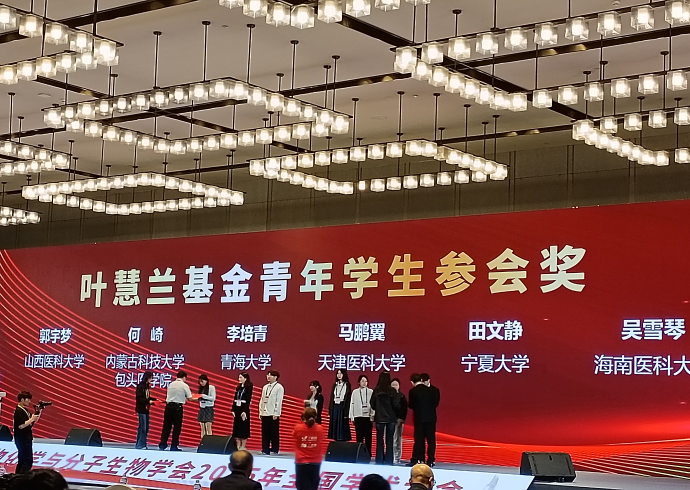 硕士研究生田文静同学积极提交会议摘要及海报,并荣获“2025年叶惠兰基金青年学生参会奖”。“叶惠兰基金青年学生参会奖”由中国生物化学与分子生物学会设立,旨在鼓励和支持全国高校及科研院所生物化学与分子生物学相关专业的优秀青年学生积极参与高水平学术交流,拓宽科研视野,激发创新思维。会议期间,田文静同学积极参与会议报告及海报交流,与来自全国各地的专家学者及学子进行深入探讨,展现了宁大学子在生命科学领域的风采。