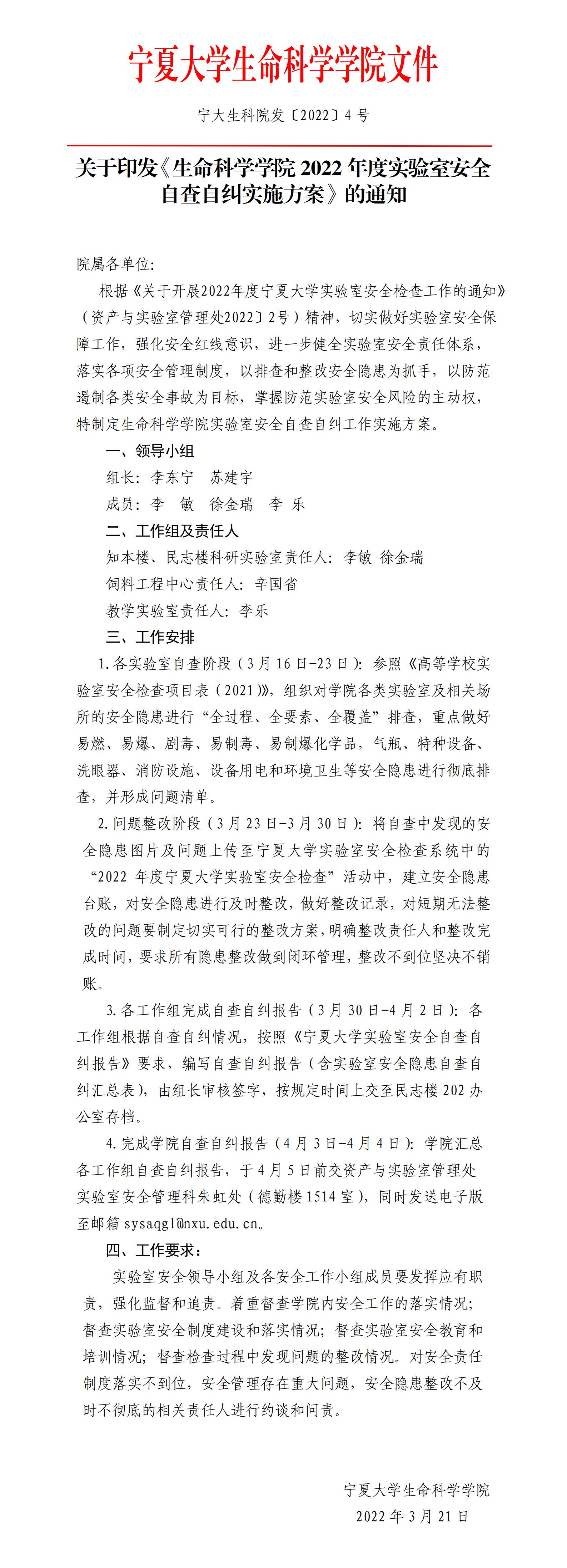 关于印发《老澳门开奖记录 2022年度实验室安全自查自纠实施方案》的通知