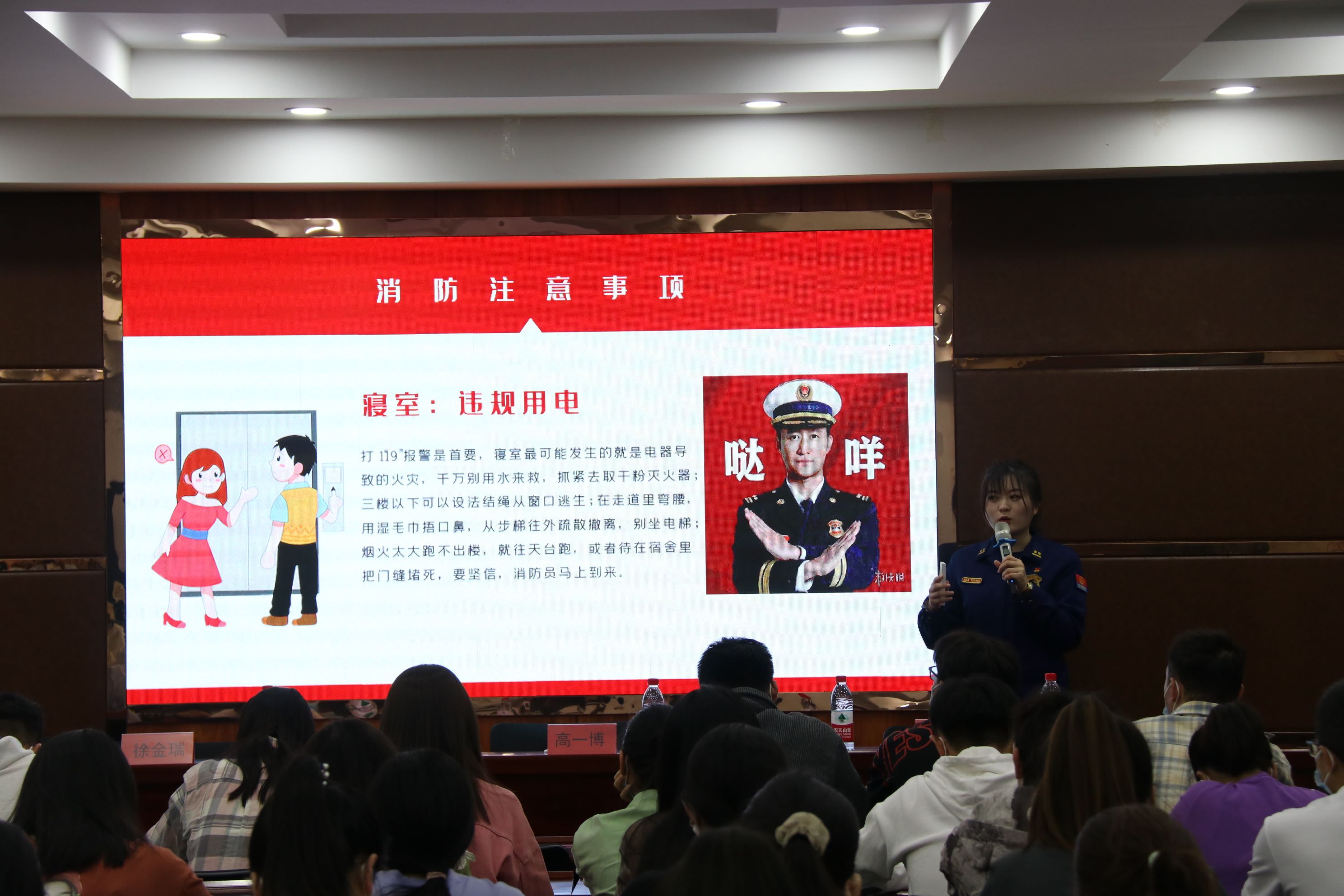 于5月11日下午举行了消防安全知识培训及应急演练。西夏消防救援大队高一博参谋主讲,保卫处丁大勇副处长参加了活动。学院义务消防员、实验室安全责任人、研究生及本科生共100余人参加了培训、疏散逃生和灭火演练。本次活动由老澳门开奖记录