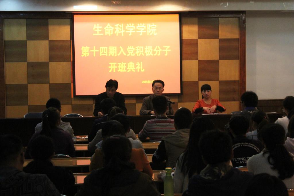 第十四期入党积极分子培训班开班典礼在学院二楼报告厅隆重举行。院党委书记沈岩东、辅导员杨亚珺出席本次开班仪式,院党委副书记叶志春主持。
