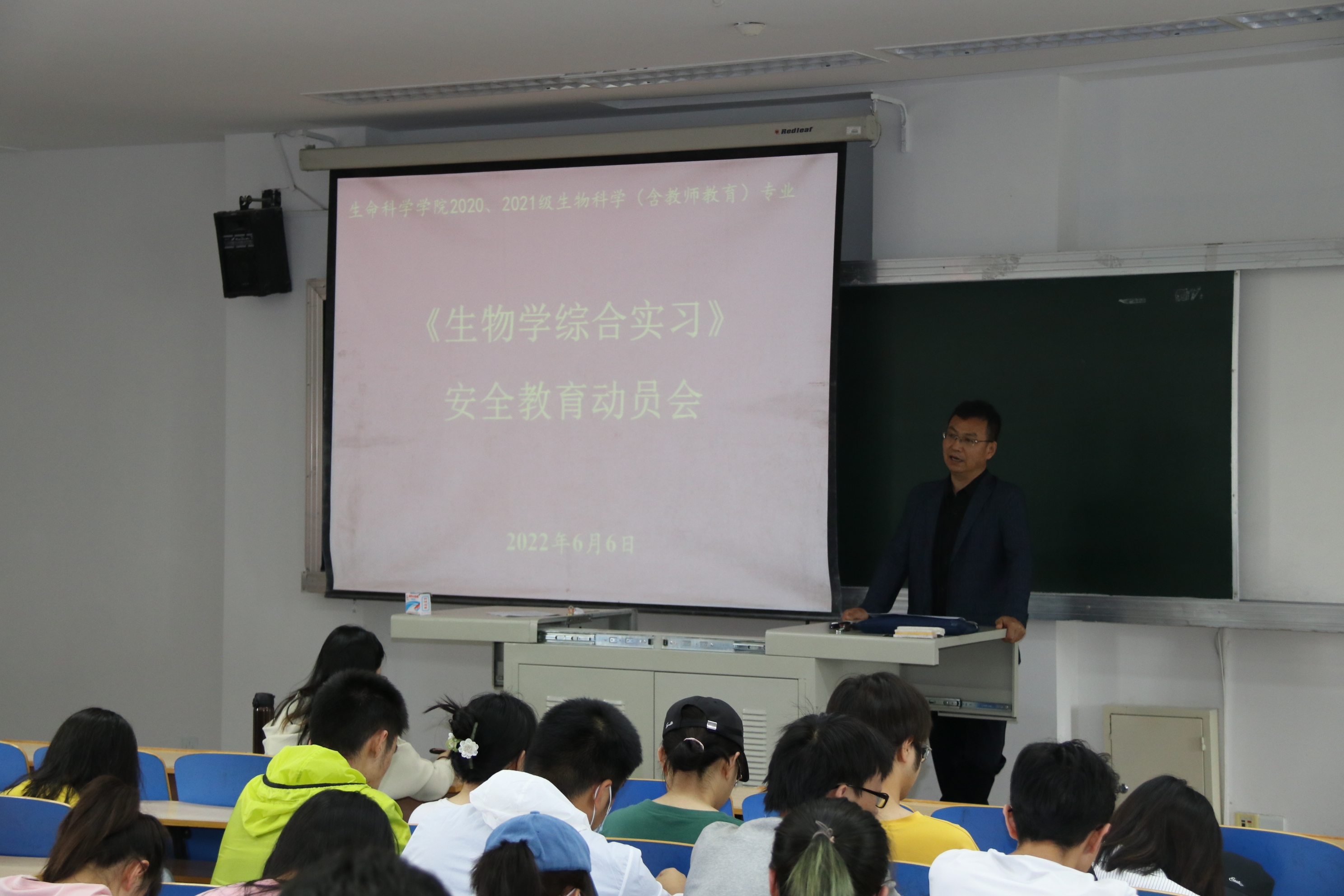 根据教学工作安排,20级生物科学(教师教育)、生物科学专业38名学生,21级生物科学(师范)专业39名学生将于6月6日-16日开展为期10天的生物学综合实习。通过这次会议,同学们普遍对此次实习有了更深入的认识,进一步强化了纪律观念,端正了实习态度,明确了实习目标和任务,为顺利完成生物学综合实习打牢了基础。