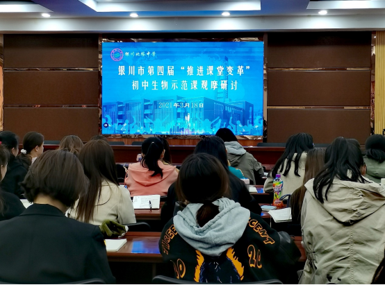 师范教育教研室组织2018级生物科学(教师教育)专业学生观摩了“银川市第四届‘推进课堂变革’初中生物示范课观摩研讨”活动。观摩分两组进行,一组同学到银川二中北塔分校进行现场观摩,另一组同学在宁夏大学文萃校区知本楼报告厅观摩网络直播。