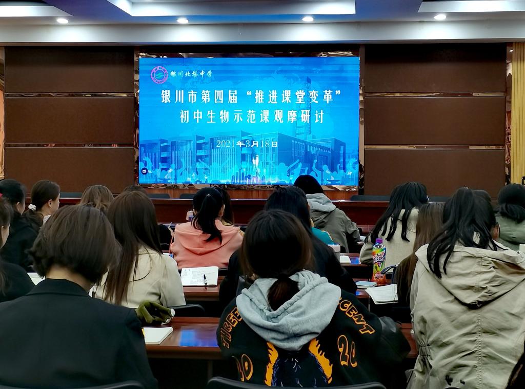 师范教育教研室组织2018级生物科学(教师教育)专业学生观摩了“银川市第四届‘推进课堂变革’初中生物示范课观摩研讨”活动。观摩分两组进行,一组同学到银川二中北塔分校进行现场观摩,另一组同学于宁夏大学文萃校区知本楼报告厅观摩网络直播。