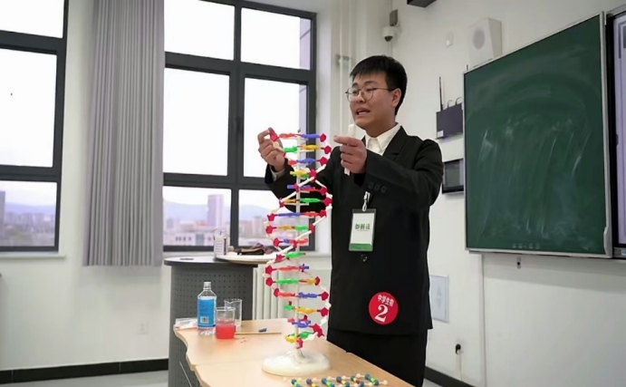 阳震同学以高中生物学必修二教材中“DNA分子的结构”一节为教学内容,凭借扎实的专业知识、先进的新课程理念、自信从容的教态、多元化的教学方法,在激烈的竞争中脱颖而出,体现出老澳门六合彩开奖