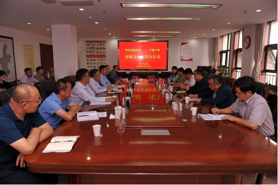 近日,宁夏大学李建设副校长、科技处曹兵处长等一行赴自治区林业和草原局就双方开展科技战略合作事宜进行座谈并签署了战略合作框架协议。